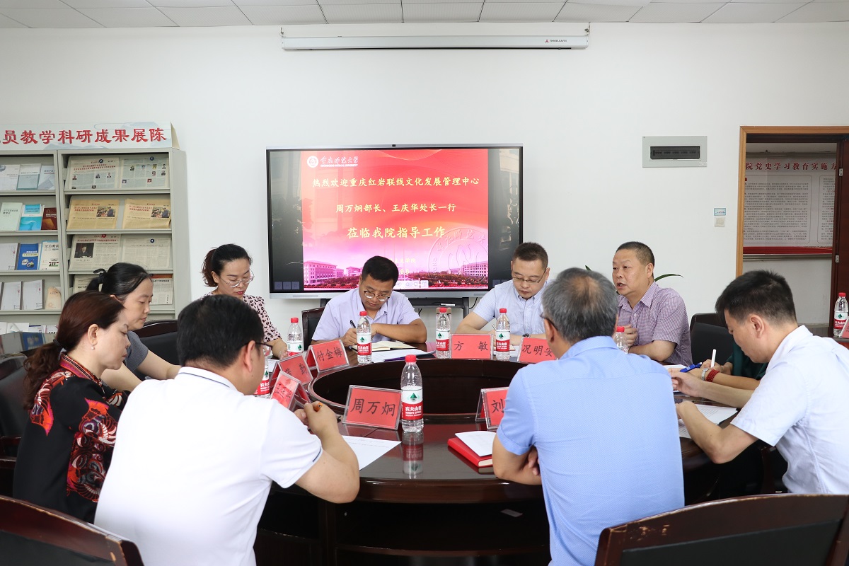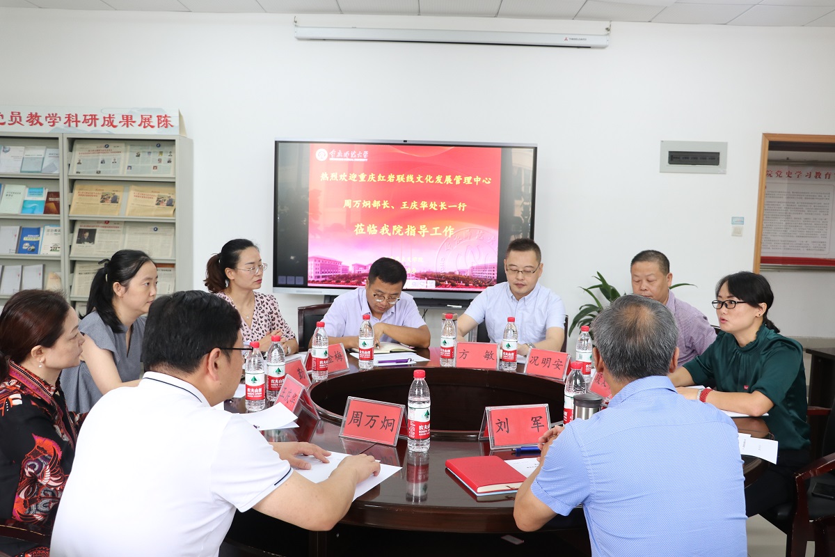 301会议室,与重庆红岩联线文化发展管理中心进行交流座谈,研讨下一步开展合作事宜。重庆红岩联线文化发展管理中心社会教育工作部部长周万烔、科研处王庆华处长,我校成人网
