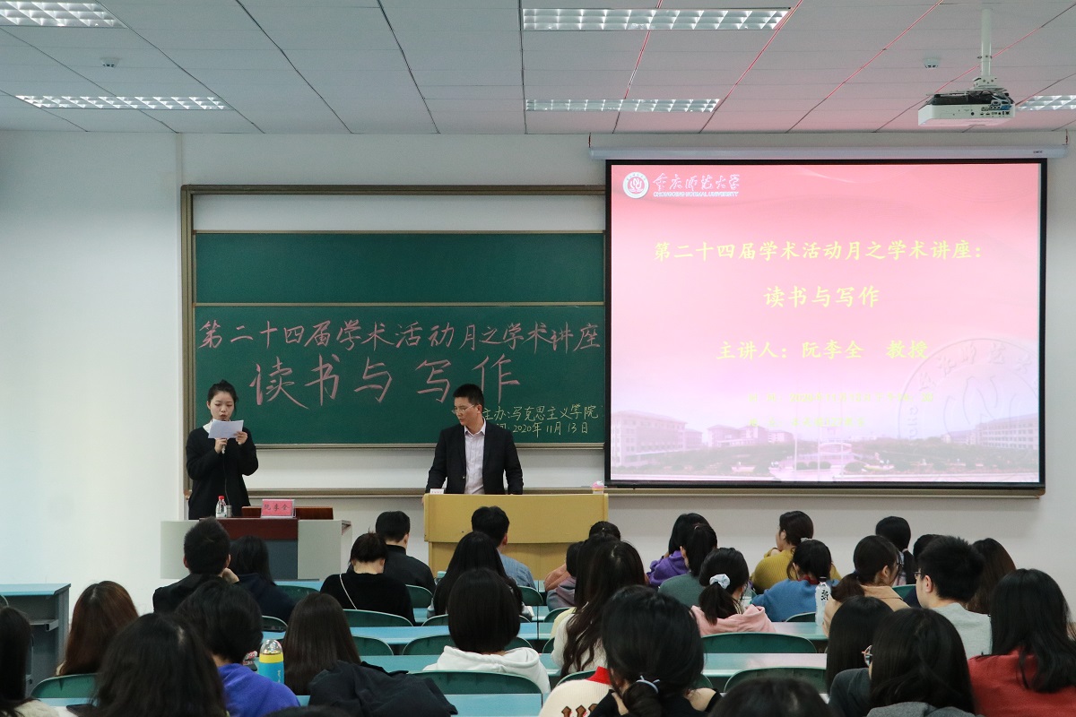 2020年11月13日下午14:30,成人网 阮李全教授应邀在求是楼127教室为研究生作“读书与写作”专题讲座。2019级学术班研究生及2020级全体研究生参加,活动由研究生孙梦迪主持。