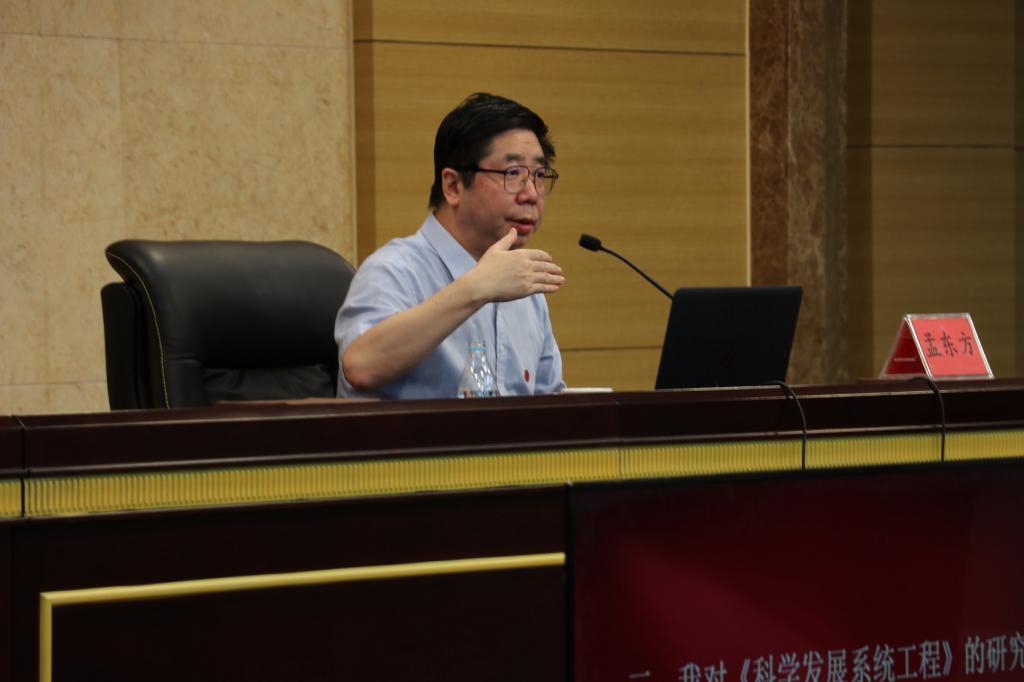 孟教授介绍了他在1994年编著了《邓小平理论研究》,并在第六章专门研究了邓小平的发展理论;于2005年撰写了《论邓小平的发展观》。《科学发展观简明读本》系列丛书重点指明了科学发展观的第一要义是发展,核心是以人为本,基本要求是全面协调可持续,根本方法是统筹兼顾。孟教授以十分形象的图表分析法从科学发展观的背景、对象、特点、意义,科学发展观概述,科学发展观的理论框架、整体思路,如何去落实科学发展观四个方面详细介绍了对科学发展观系统工程的研究。强调了实施方法包括方针、政策在内的软系统和意指具体运作方向的硬系统。孟教授又从动态上分三个方面研究了科学发展运行系统的构建:概论、内涵系统、运行系统。孟教授又从研究背景、意义、标志等多个方面详细介绍了他对构建《中国发展学》的探索,并认为中国发展学具备一门学科的五个标志:鲜明的研究对象、系统的理论体系、独特的内在规律、成型的研究方法、重要的现实效应。孟教授还为同学们细致讲述了学术论文写作方法。