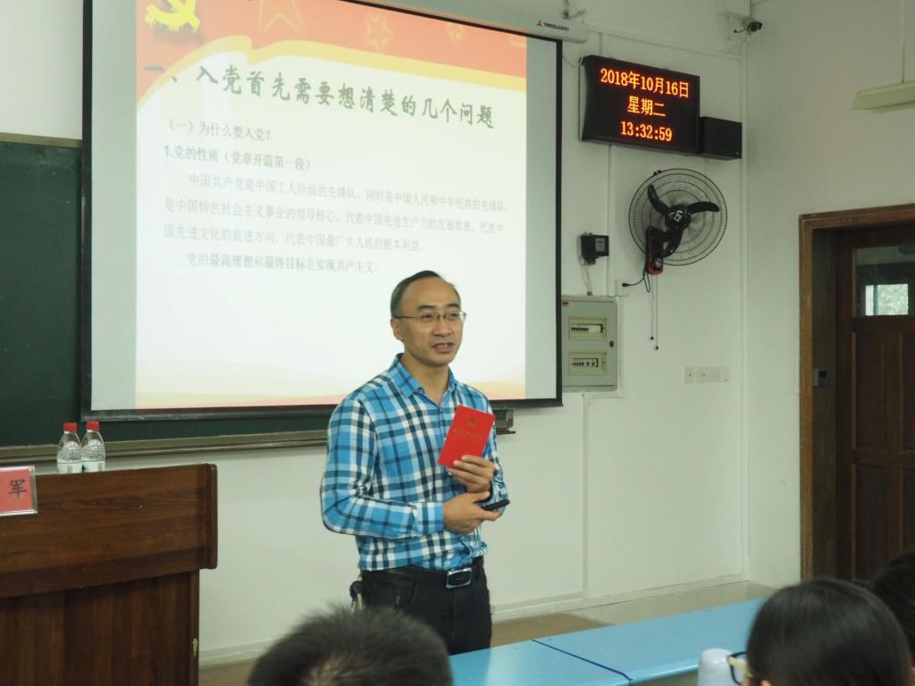 刘军老师以视频引入,让同学们对如何成为一名合格的共产党员有了基本的了解。他谈到:“要端正入党动机首先要想清楚几个问题,为什么入党?怎么入党?入党怎么做?”