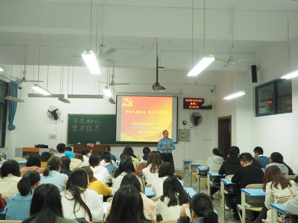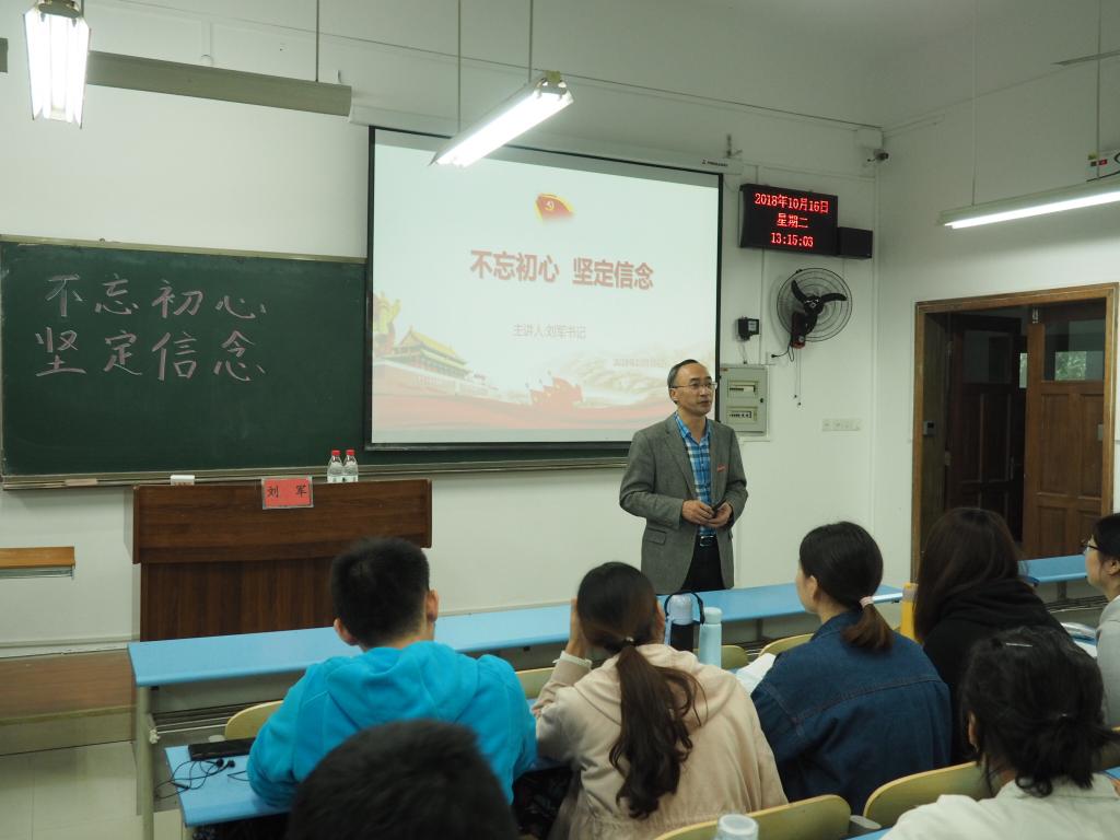 10月16日下午13:00,“不忘初心,坚定信念”主题讲座于弘德楼13102教室举行。讲座由学院党委书记刘军老师主讲,学院研一研二所有党员、入党积极分子聆听了本次讲座。