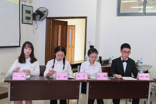 ,由赵亚玲、李雪黎、孙梦迪、米果四位辩手组成。反方来自外国语学院,由潘思成、肖杨梅、周林江、赵人四位辩手组成。