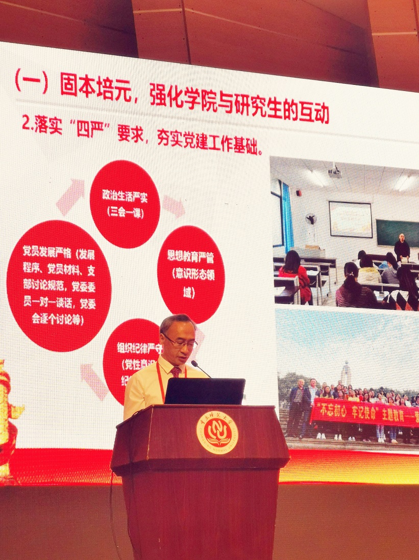 研究生培养工作进行了汇报。刘书记汇报的题目是《坚持旗帜引领,强化“五个互动”,切实提高研究生党建与思政工作新成效》,他从三个方面进行了汇报。首先,他介绍了成人网