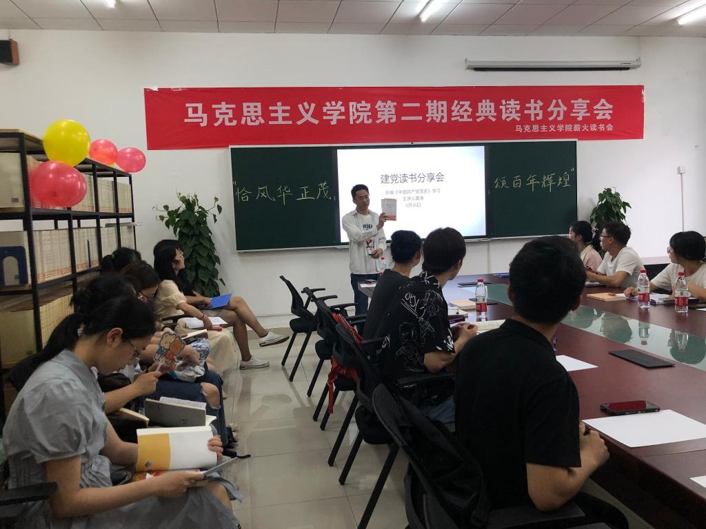 为庆祝建中国共产党成立一百周年,重温党的光辉历程,歌颂党的优良传统,学院薪火读书会于2021630日在经典书屋(汇贤楼107)举办了“恰风华正茂,颂百年辉煌”第二期经典读书分享会。学院党委书记刘军、党委副书记方敏、副院长况明安,研究生与本科生代表参与此次分享会。