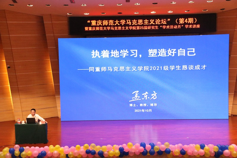 最后,孟教授梳理了重师和马院的发展历程以及取得的辉煌成就,彰显了重师、马院的风采,激励全体新同学共促未来大发展。