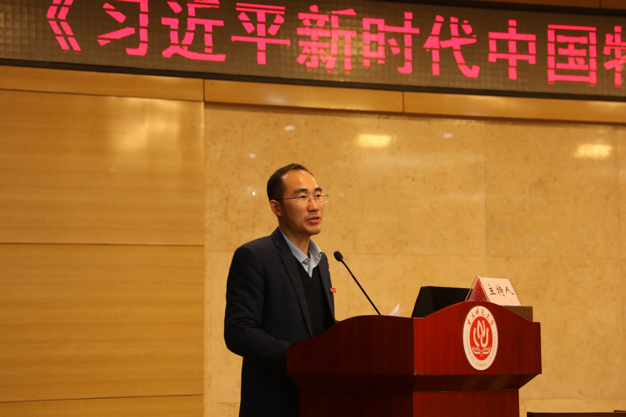 孟教授结合习近平同志的人生经历和特殊优秀品质,阐释了习近平新时代中国特色社会主义思想是如何在新时代应运而生,成为新时代精神精华的;结合“八个明确”“十四个坚持”等的丰富内涵,阐明了习近平新时代中国特色社会主义思想是党和国家必须长期坚持的指导思想;结合中国近代以来历史发展进程,诠释了只有社会主义才能救中国,只有坚持和发展中国特色社会主义才能实现中华民族伟大复兴。