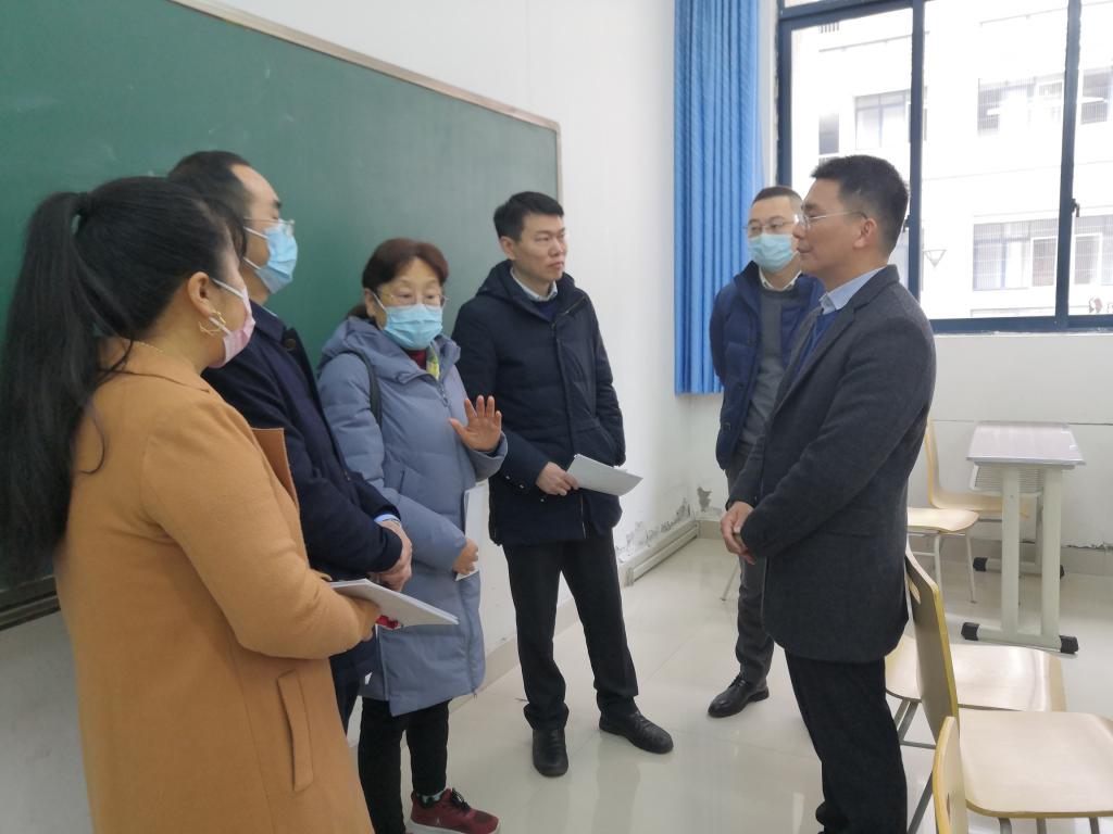 2022年2月28日上午,我校正式开学。上午8点30分,校领导带领党政办、教务处、学生处等相关职能部门同志在学校各教学区域分组开展了新学期开学例行教学秩序检查工作,并重点检查开学第一堂课的情况,包括教师到岗和授课、学生出勤、教材到位、课堂教学秩序、教学设备运行等方面。同时,校领导还深入课堂,抽选课程现场听课。学校校长、成人网