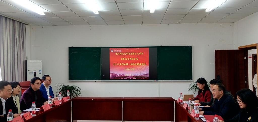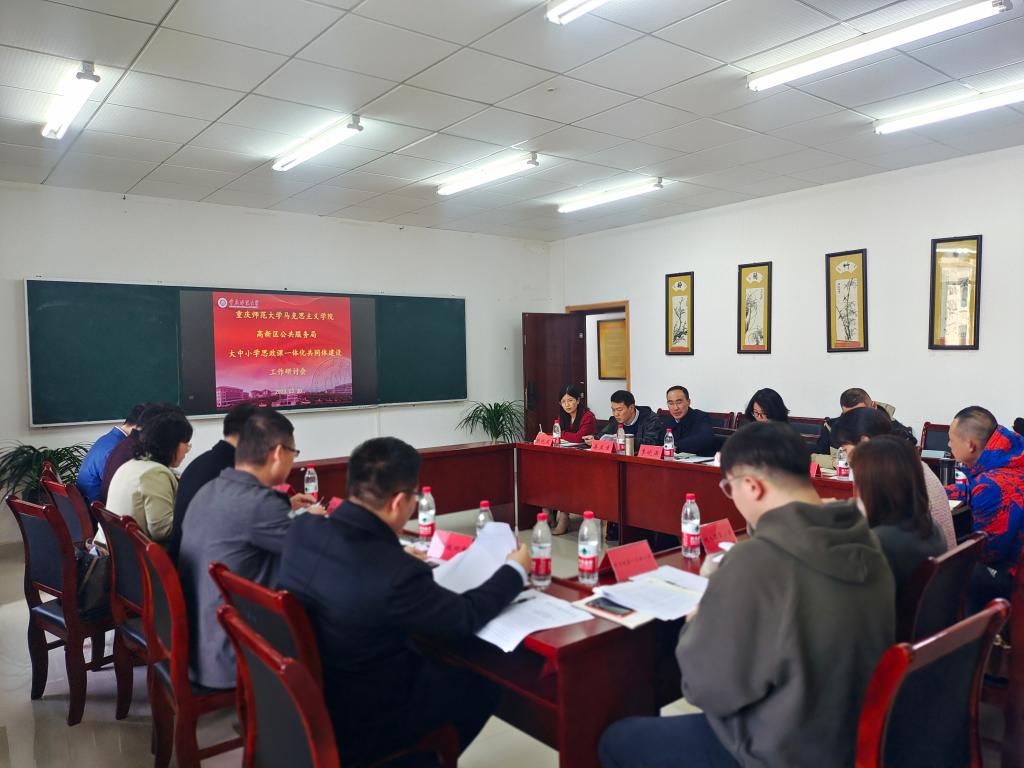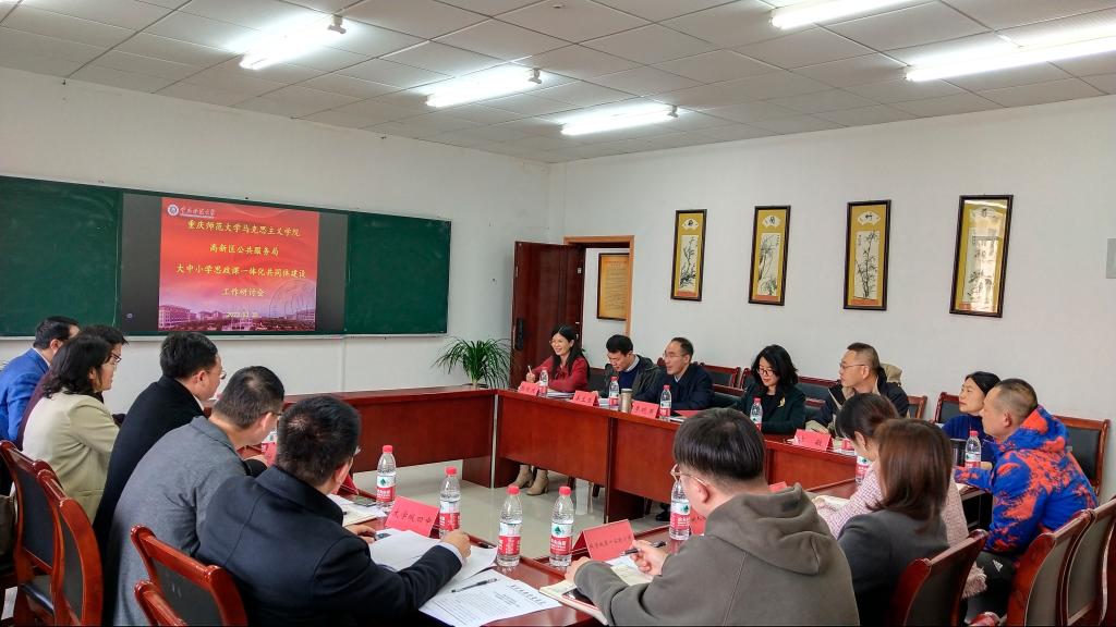 与重庆市高新区公共服务局于汇贤楼309会议室召开了“大中小学思政课一体化共同体建设”工作研讨会。高新区公共服务局教育管理科科长兼小学思政教研员付有能、中学部主任兼中学思政教研员冯志刚、高中思政兼中小学劳动教研员谭兰,巴蜀科学城中学、成人网