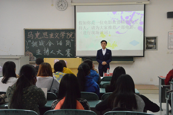 活动伊始,主持人简单介绍了本次比赛规则。比赛分为两个环节,第一个环节是自我介绍,包括两分钟才艺表演;第二个环节为三分钟的模拟主持。