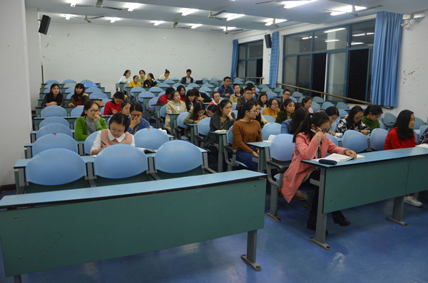2013级学生在研究生备考过程中遇到的问题,2016年10月16日19时,学院党委副书记姜土生博士在弘德楼5201为考研学生开展讲座,对他们进行考前辅导。 2013级辅导员张晓庆老师出席本次活动。
