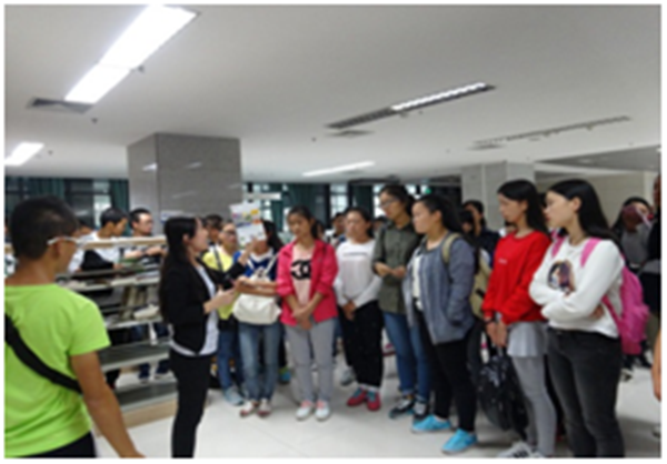 此次辅导共分为四个环节:入馆要求的介绍,图书馆参观,馆藏介绍,文献资源检索及使用方法的培训。