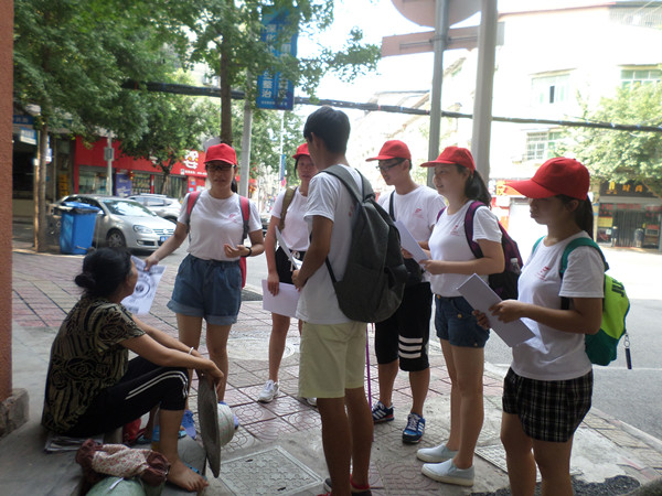 上午8时,志愿者们开始“走街串巷”式的宣讲。此次宣讲的内容主要有两个方面。一个方面是习近平总书记重要讲话精神中的“推动教育公平,发展全民教育”。另一个方面是针对上半年来各大城市爆发洪灾宣讲防洪常识。