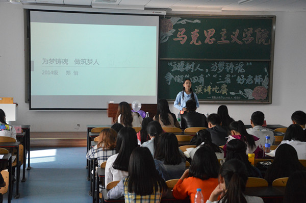 学子郑怡将代表学院参加学校的“五四”演讲比赛,预祝她取得佳绩。