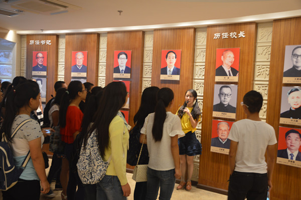 首先,校导游队成员带领同学们参观序厅,序厅最引人注目的便是我校领导班子的照片。导游依次介绍了我校历任领导,当同学们听到我校现任校长周泽扬曾留学日本七年都唏嘘不已。接下来便参观历史展厅,历史展厅记录了我校建校以来发展的三大阶段。成人网