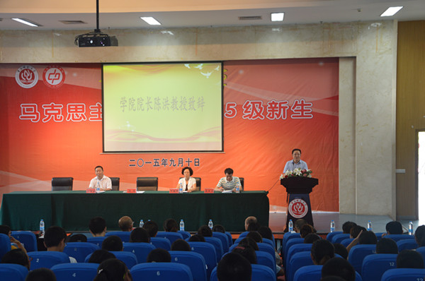 深厚的文化积淀、鲜明的办学理念和良好的学习环境。此外,陈院长还表示将会倾注全力为新生在学院的发展搭建良好平台。而后,他对2015级新生提出寄语:“做一个有思想、有头脑、有情操的,成为始终坚持马克思的立场和方法,做可靠的接班人。”接着,况明安副院长宣读了《2015级新生表彰决定》,希望受表彰的同学再接再厉,继续发扬优秀学风。
