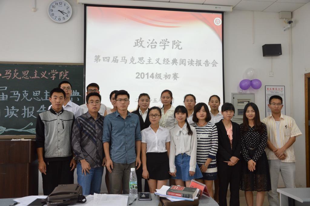 2013级、2014级第四届“马克思主义经典阅读报告会”初赛分别于弘德楼2502、2503举行。出席并担任本次比赛评委的是王超、朱柳松、孔坤杰、冯欢欢等多名优秀研究生代表。2013级、2014级学生参与此次比赛。