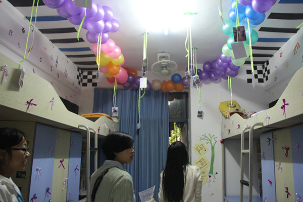 在评比过程中,评委团逐一对参赛寝室进行检查评比,就寝室的装饰风格、手工创作、卫生条件进行评比打分。各寝室派代表向评委们详细的介绍和解说寝室的装饰主题以及意义,让评委对各寝室装扮理念有了更深地了解。同学们通过对寝室的整理和设计,运用独具匠心的创意和精心的手工创作展示了成人网