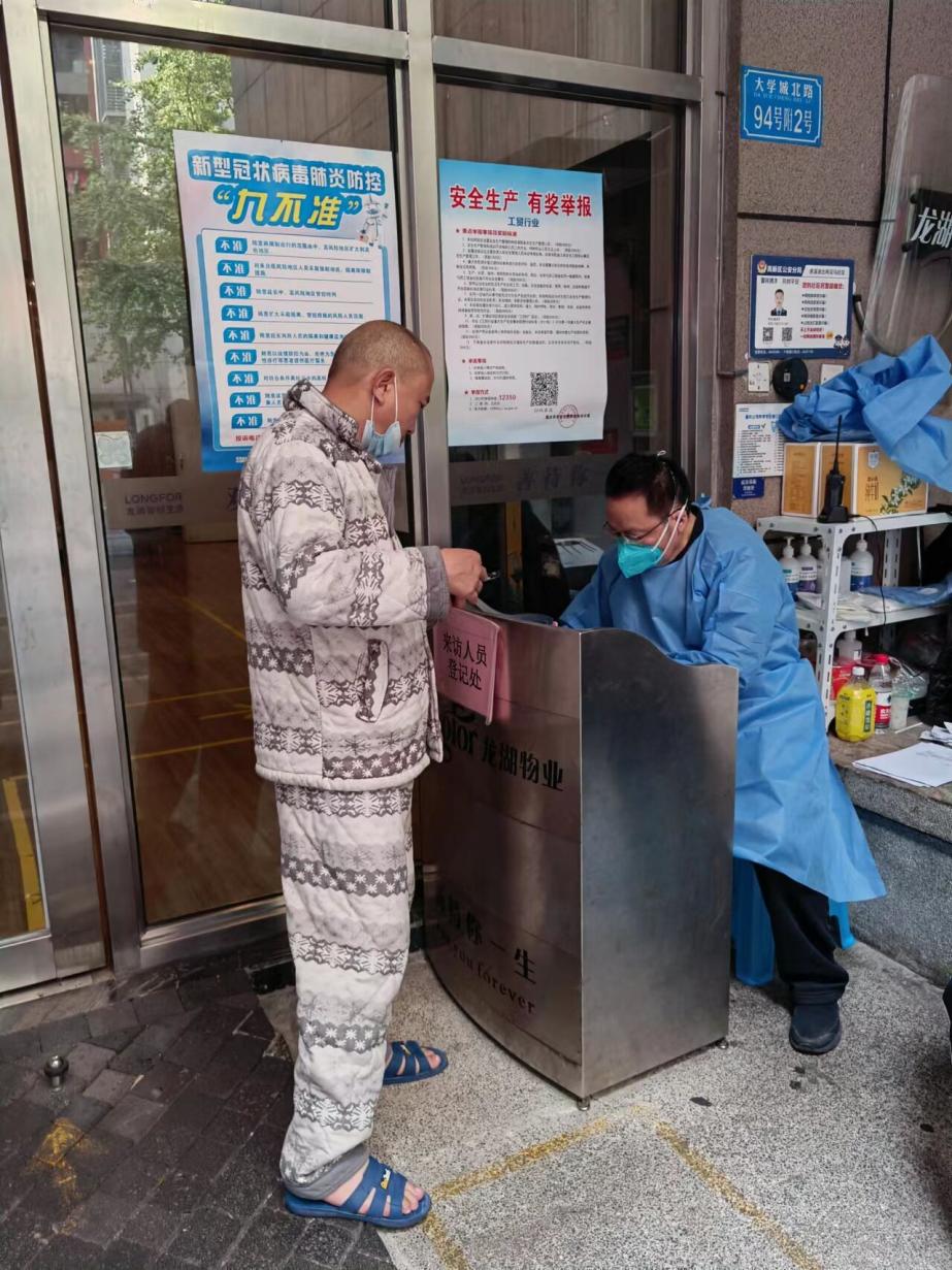 学生党员干部服从学院调度指挥,严格落实防疫要求,投身学院疫情防控工作之中,协助做好核酸检测、测量体温、防疫宣传、秩序维护。