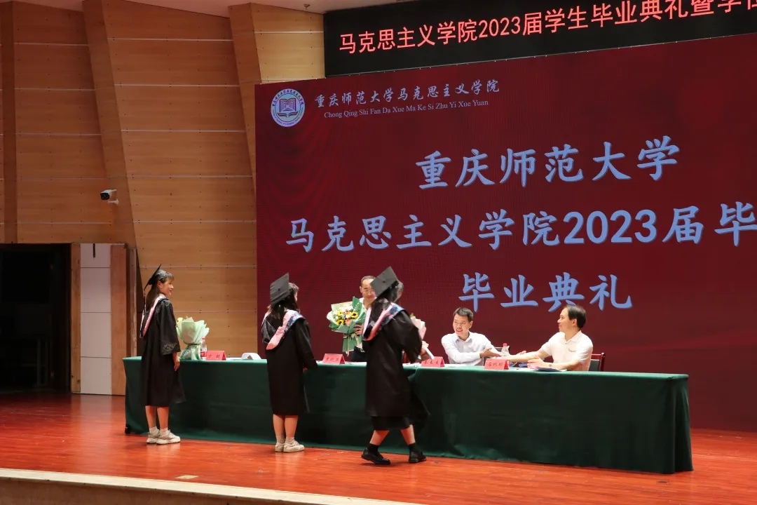 毕业研究生代表章娜首先表达了对学院、老师多年的栽培之恩,接着,她以过去看未来,致力于将在重师的所学所悟运用到未来实践中去,做到个人与社会发展的统一。此外,她希望大家无论身处何时何地都绝不轻言放弃,勇往直前地追逐梦想,用奋斗书写属于新时代马院人的华丽篇章。