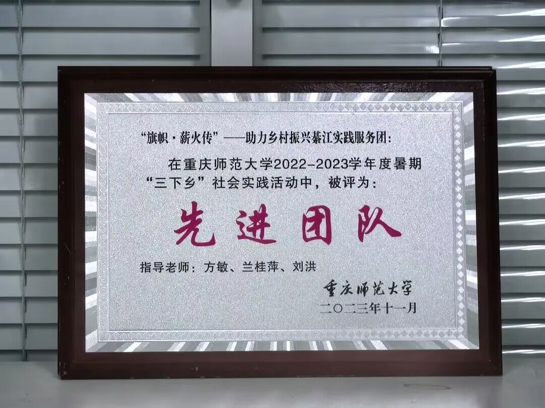 “旗帜·薪火传”——助力乡村振兴綦江实践服务团、“旗帜·社区”求真学史实践团赓续红色基因,担当青年责任,荣获“先进团队”称号。