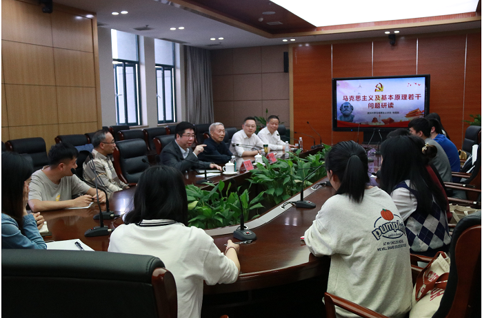 梅教授首先详细介绍了马克思主义理论学科的成立背景及发展过程,强调了中央对马克思主义理论学科的高度重视,阐明了马克思主义基本原理是该学科的基础和核心,并建议该学科的研究生一定要重视马克思主义理论相关著作的学习。梅教授从建立马克思主义理论学科的初衷及其学科地位出发,介绍了马克思主义理论学科与马克思主义哲学、马克思主义政治经济学、科学社会主义等学科之间的关系,他认为要对马克思主义进行整体性研究,并指明习近平新时代中国特色社会主义思想之所以具有强大的战斗力就在于坚持了马克思主义基本原理,同时又与毛泽东思想、邓小平理论、“三个代表”重要思想和科学发展观一脉相承。