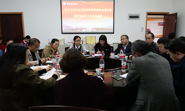 党委中心组其他成员、思想政治理论课部分教师代表和学生代表,会议由毛宇部长主持。