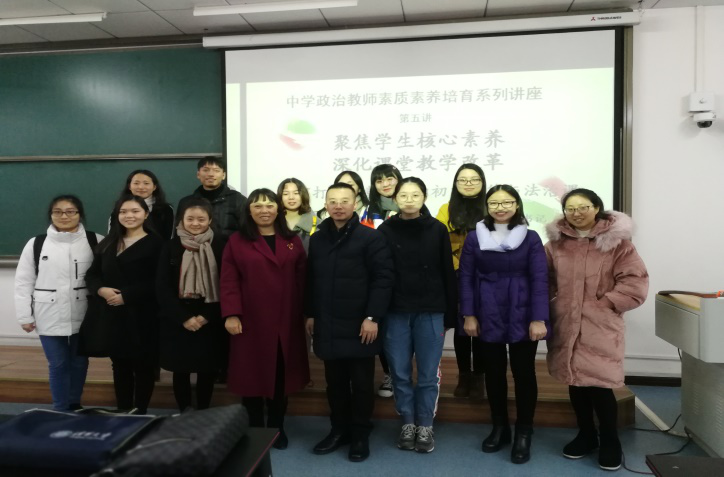 讲座主要围绕“政治学科的核心素养”、“基于核心素质的优质目标”和“一堂好的初中道德与法治课的基本要素”这三个方面展开的。