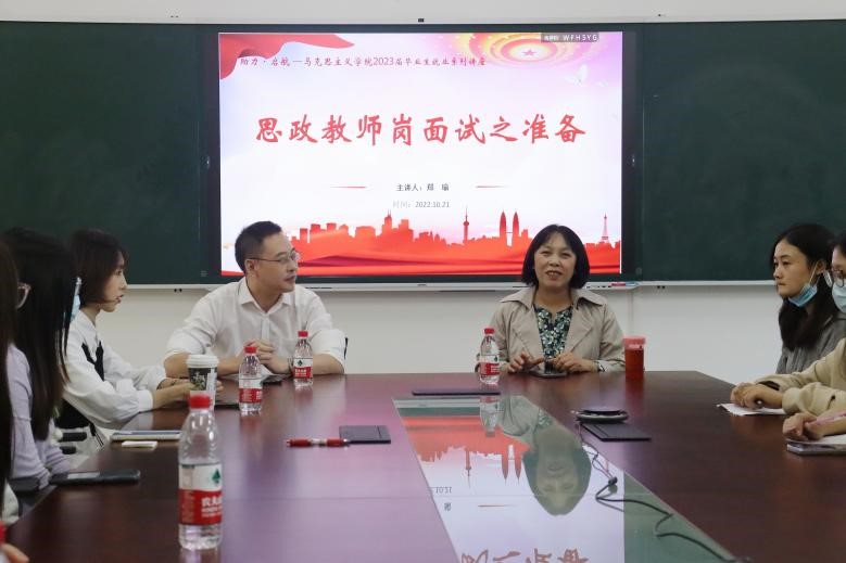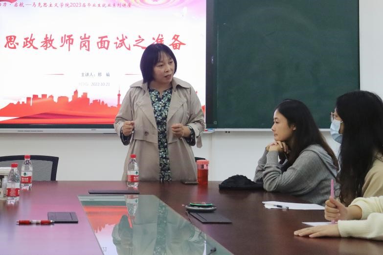 于2022年10月22日13:30在汇贤楼107会议室举行“助力·启航——2023届毕业生就业系列讲座”之思政教师岗位面试准备,讲座线上线下同步开展。此次讲座特邀成人网