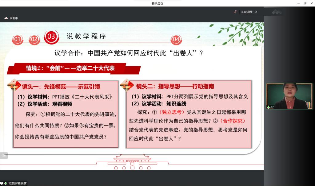 比赛伊始,14位选手在主持人介绍比赛规则、评分细则后按照抽签顺序轮流进行展示。选手们从教材分析、学情分析、教学方法、课堂设计、板书设计和教学反思等方面进行详细阐述,准备充足、认真严谨、匠心独运,充分展现了成人网