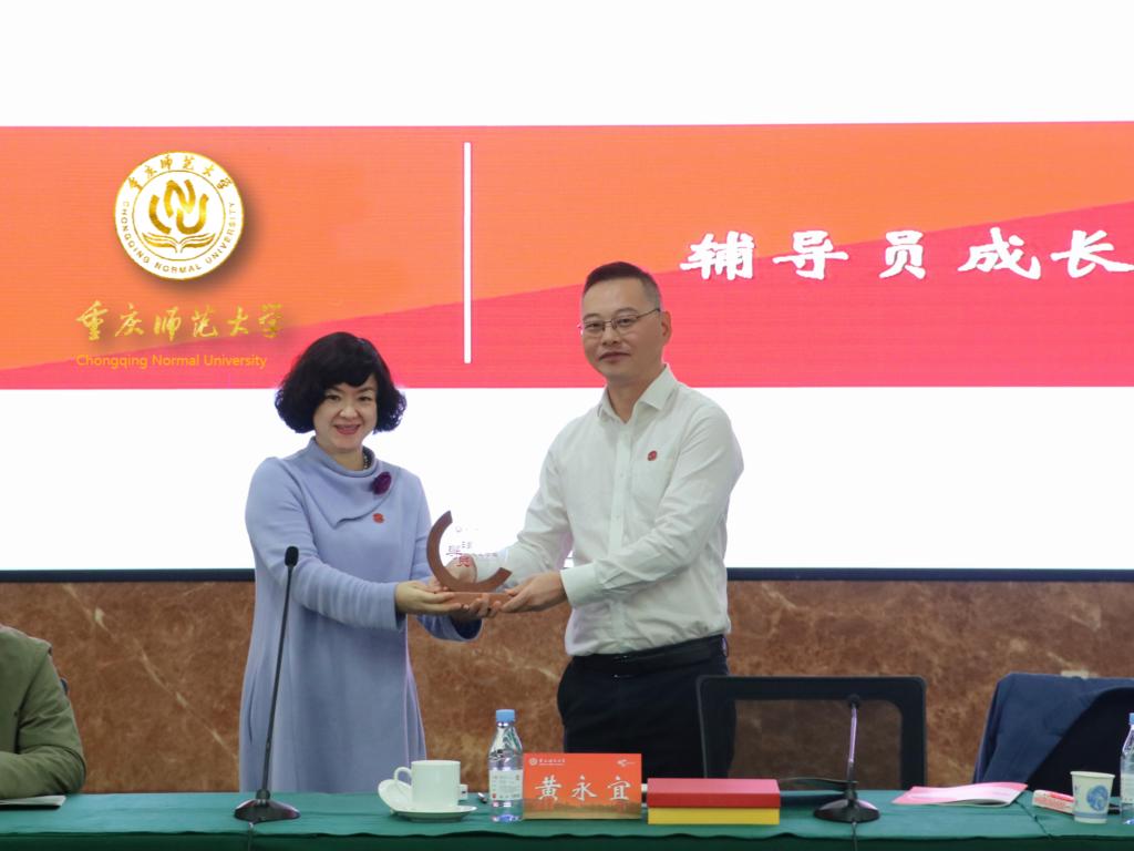 辅导员成长论坛授牌仪式。黄永宜副校长向学院党委副书记方敏授予坛徽。这枚坛徽的传承意在让理论精神无限延续,让思想的智慧光焰彼此碰撞、愈发明亮。