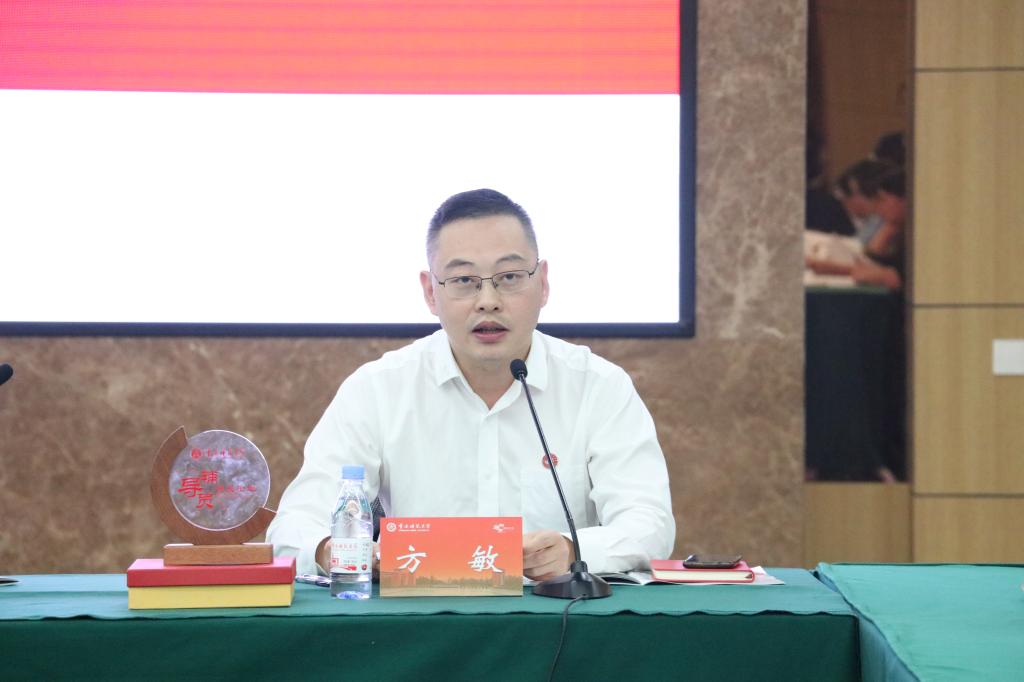 发布本次论坛深化学习及征文通知。学院党委副书记方敏指出该征文活动旨在鼓励学工队伍将本次会议收获转化为理论成果,在优化自身教育教学水平的同时进行学术研究,为自身的荣誉成绩增光添彩。